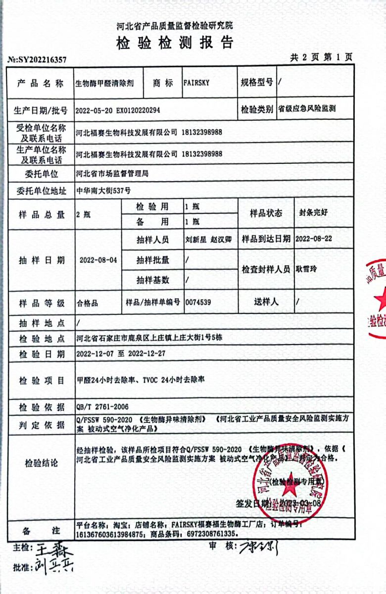 产品名称:FS-AP-304 生物酶甲醛清除剂 除TVOC 净化空气
